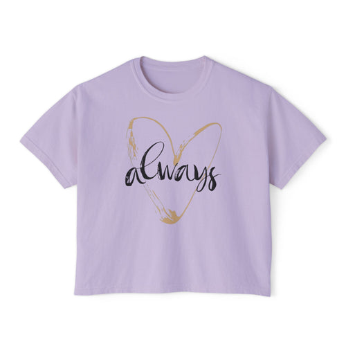 Always Heart Women's Boxy Tee — Gold Brushstroke Love Graphic